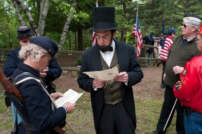 On the Saturday of Memorial Day weekend, the Waterbury Veterans Committee held a ceremony honoring Civil War dead buried in the Fort Hill cemetery. An impersonator read the Gettysburg Address as Abraham Lincoln.